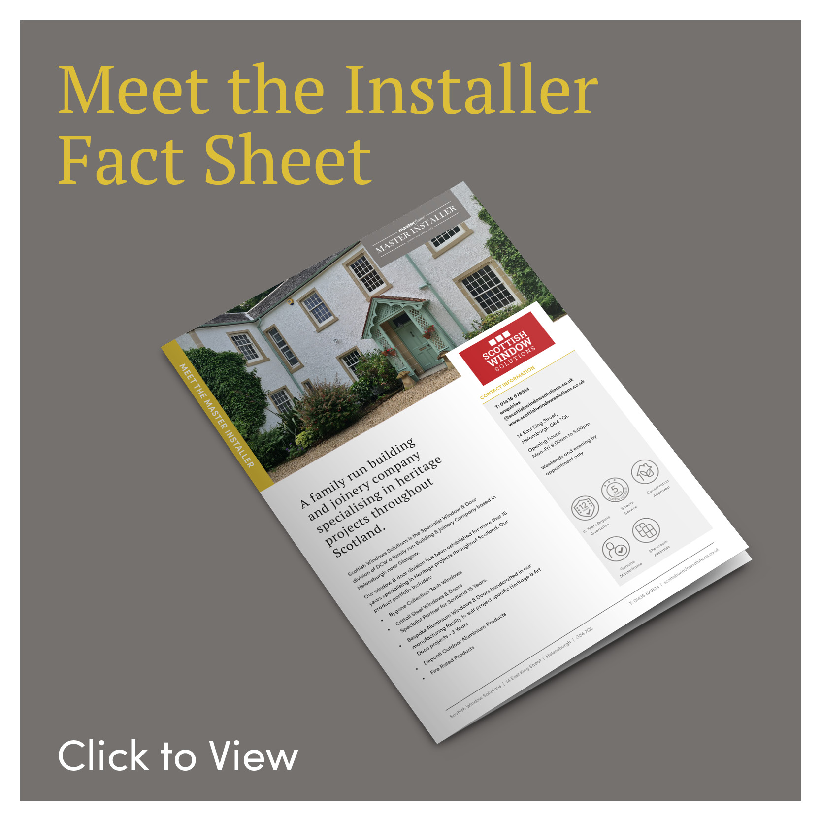 Scottish Windows Solutions is the Specialist Window & Door division of DCW a family run Building & Joinery Company based in Helensburgh near Glasgow.