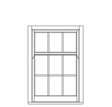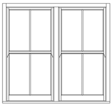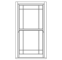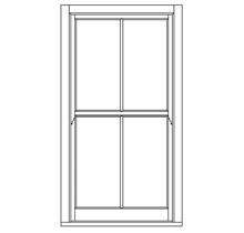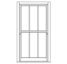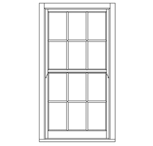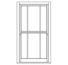 18th-century slender Georgian design, often 6 panes over 6, but sometimes as many as 12 panes over 12. authentic Georgian layouts are often without horns.