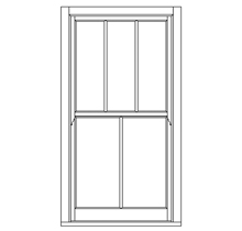 A combination sash, three-light design in the upper sash, a centre bar in the lower sash.