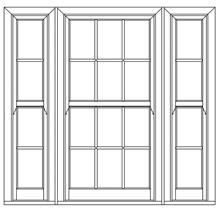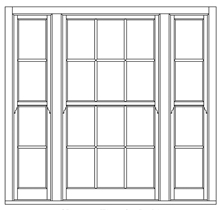 Normally split 1/4, 1/2, 1/4, often fixed side windows, sliding central sashes and again coupled frames on one continuous cill.